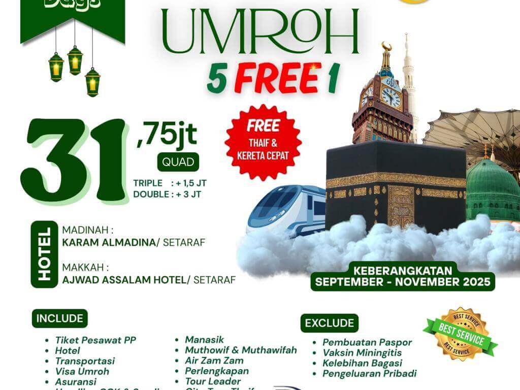 Umroh Promo 5 Free 1 — Kesempatan Emas untuk Menunaikan Ibadah Umroh Bersama Keluarga & Sahabat
