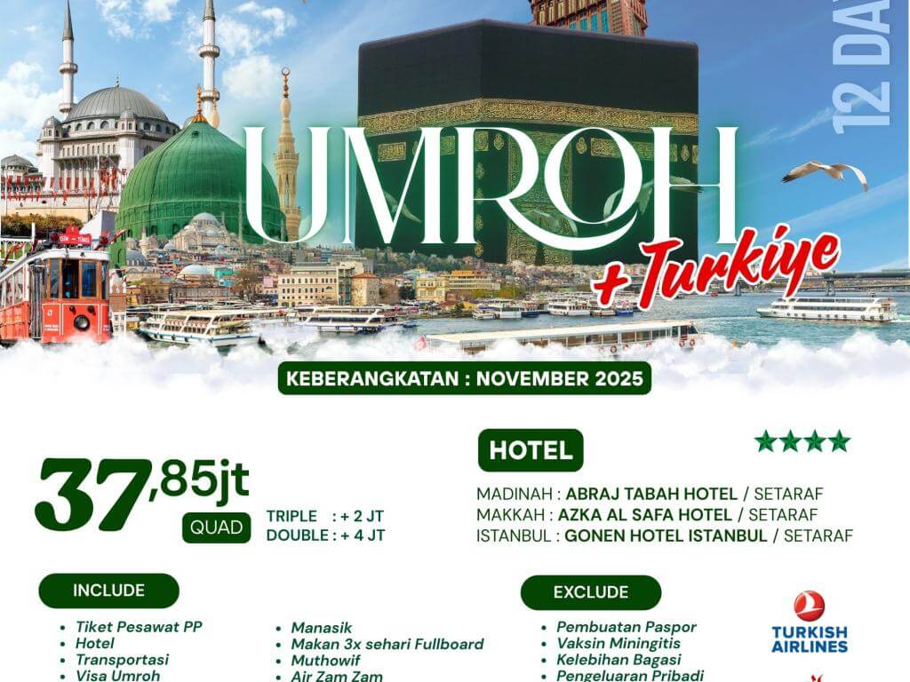 * PINDAH PAKET, TANGGAL DAN GANTI NAMA 45 HARI SEBELUM KEBERANGKATAN DIKENAKAN BIAYA Rp. 3.000.000/PAX DAN DISKON TIDAK BERLAKU (JIKA ADA)